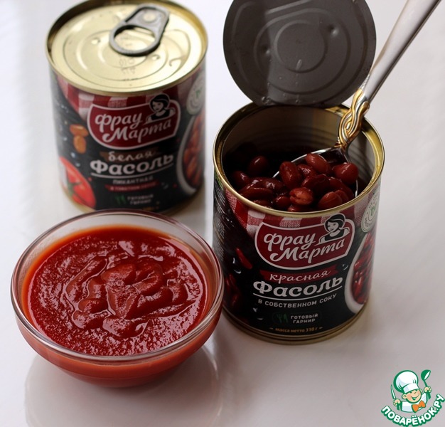 - Фасоль консервированная (Белая и красная фасоль ТМ Фрау Марта) — 2 бан.