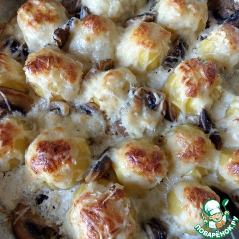 Очень вкусный и аппетитный картофель, утопающий в сырно-сливочном соусе. Может подаваться как в качестве гарнира, так и в качестве самостоятельного блюда.