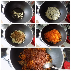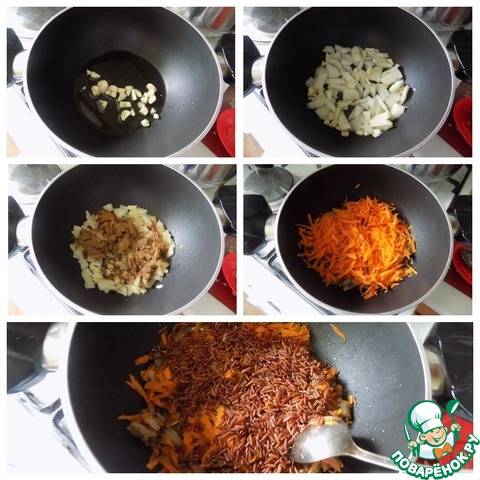 - Рис (красный 0,25 стакана, ёмкостью 200 мл, можно взять любой рис) — 1 горст.