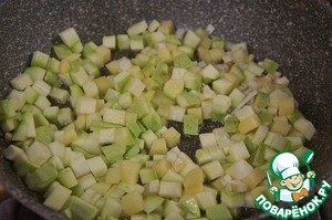 Выложить овощи на разогретую с растительным маслом глубокую сковороду и спассеровать до полуготовности.