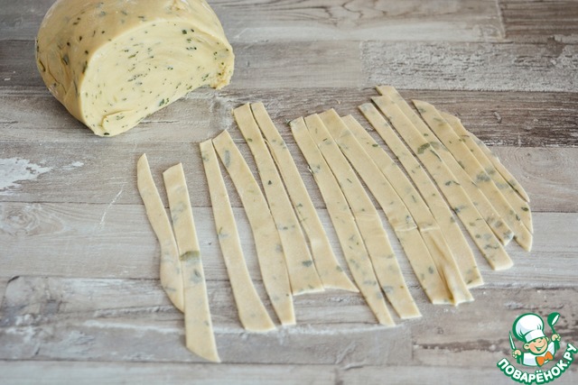 Отщипывайте от теста кусочки величиной с грецкий орех, раскатывайте на подпыленной мукой поверхности очень тонко. Затем нарежьте лапшу желаемой ширины.