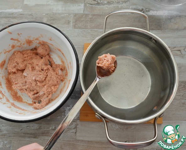 Вскипятите бульон (воду), чайной ложкой опускайте в кастрюлю небольшие кнели. -