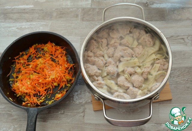 Рецепт «Суп-лапша с кнелями из горбуши»: