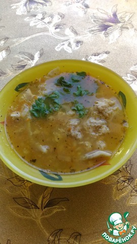 Суп-лапша с кнелями из горбуши