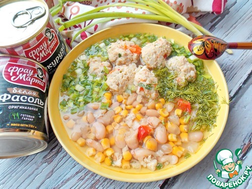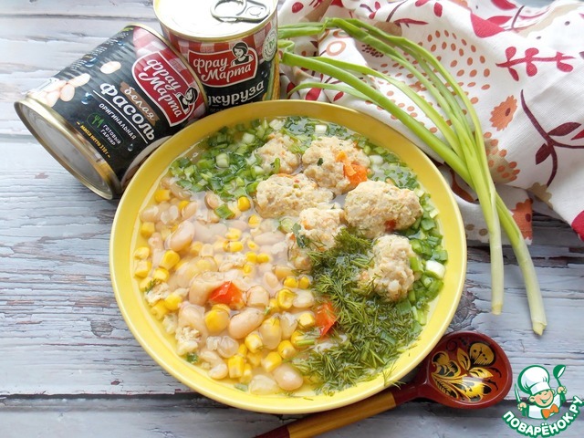 Этот легкий супчик либо очень понравится, либо больше никогда не захочется. Но те кто любит кукурузу и фасоль в любом виде, он придется по вкусу. К тому же в нем нет обжаренных овощей, нет много жирного и тяжелого. Но есть много тефтелек из куриного филе со свежими овощами, кукуруза, фасоль и много зелени.