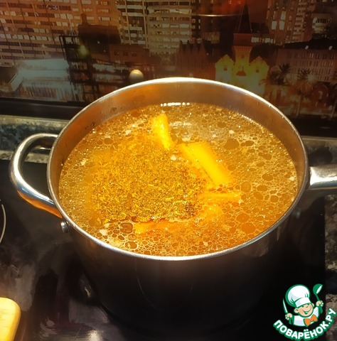В конце варки (за 5 минут до готовности) положить в бульон белую фасоль от ТМ "Фрау Марта".