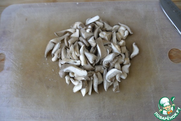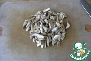 Грибы моем, обсушиваем режем полосками, у меня вешенки.