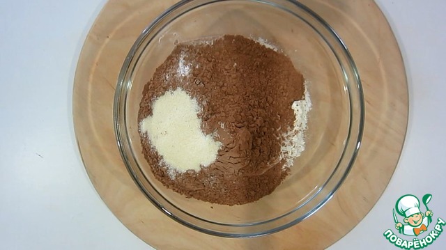 Смешиваем муку, какао, манку и разрыхлитель.