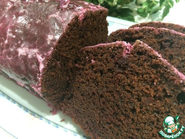 Сахарную пудру смешиваем с лимонным и свекольным соками. Покрываем кекс глазурью.
