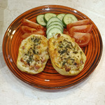 13. Картофель выкладываем на противень, заполняем фаршем, отправляем в духовку на 10 минут, при температуре- 200 С.
