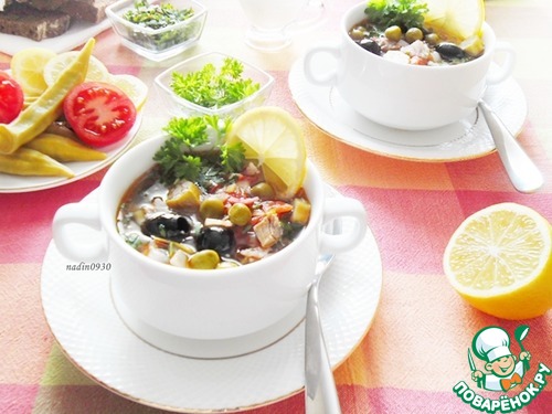 Ингредиенты для «Суп-солянка с горошком и бамией»: