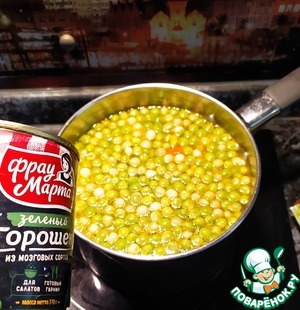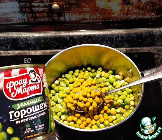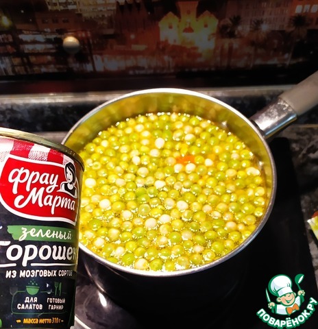 - Горошек зеленый (консервированный от ТМ Фрау Марта) — 1 бан.
