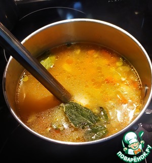 Залить 800 гр. бульона, и оставить варить на медленном огне 15-20 минут.