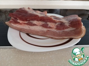 Шаг 1. Выбираем самую постную грудинку (минимум сала). Шкурка (кожа) нам очень важна, именно она делает блюдо хрустящим.