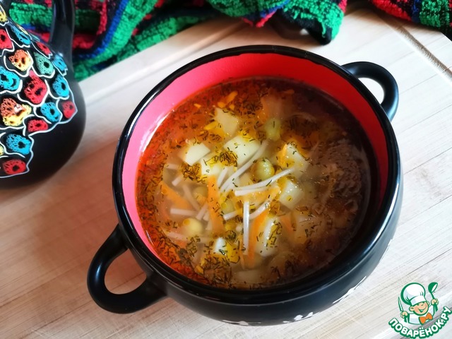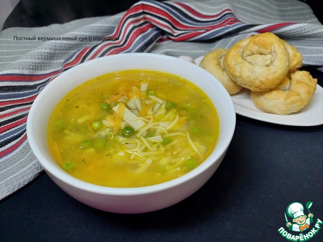 Ингредиенты для «Постный вермишелевый суп с горошком»: