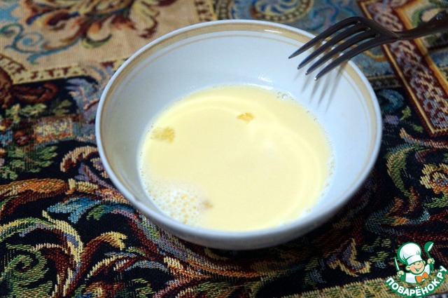 Сделать льезон: яйцо разбить в миску, влить туда же молоко или сливки, взбить вилкой или венчиком.