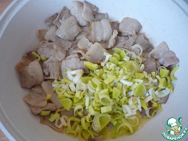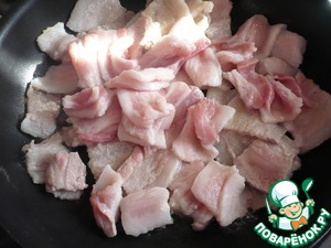 В кастрюле-жаровне обжарьте бекон около 3 минут до полуготовности.