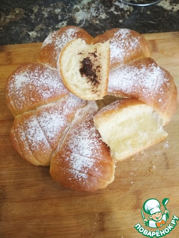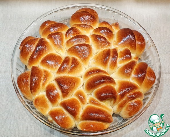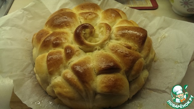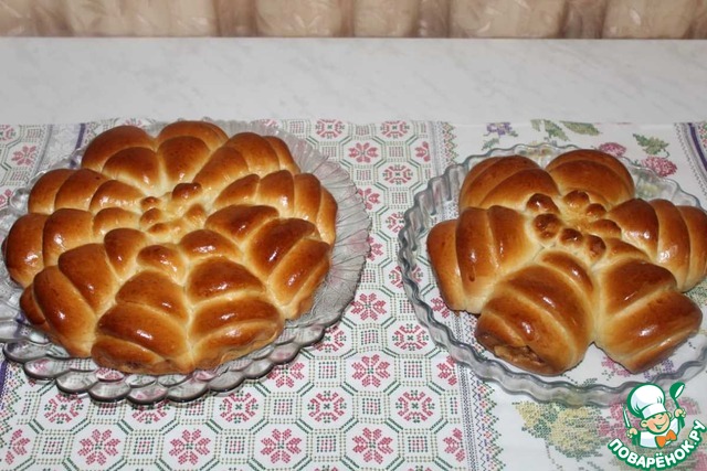 Выкладываем в форму. Оставляем на подъем на 15-20 минут. Смазываем желтком с небольшим количеством воды. Выпекаем при 190 градусах 25-30 минут.