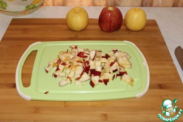 Готовим начинку. Нарезаем яблоки кубиками.