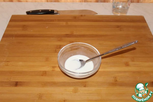 Крахмал разбавляем водой и хорошо перемешиваем.