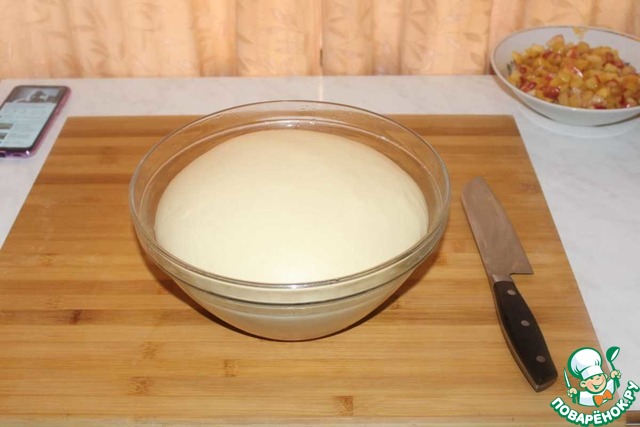 У меня получилось два пирога из этого количества теста.
