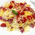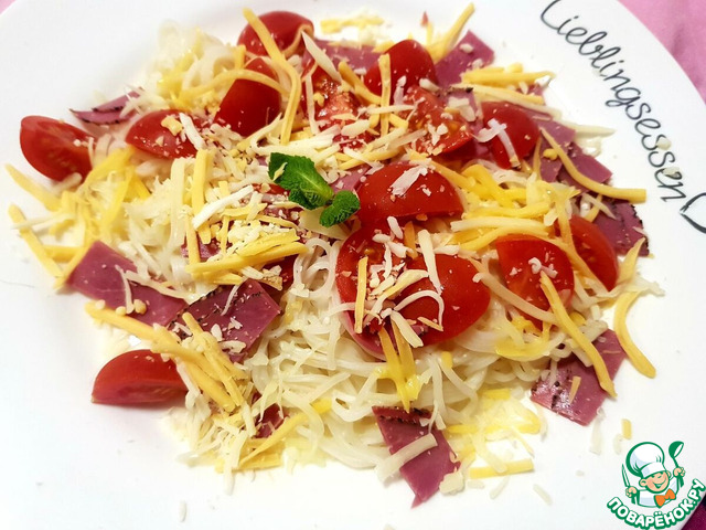 Итальянский и без макарон, как-то было бы странно. Но салат действительно довольно вкусный. Макароны с ветчиной и помидорами приобретают мягкость и какой-то особый вкус. Попробуйте!