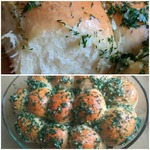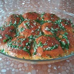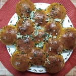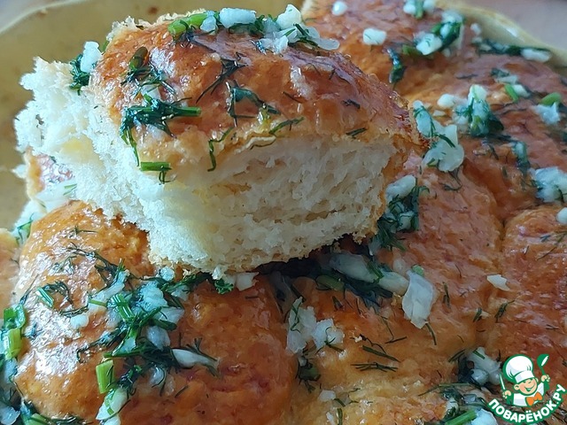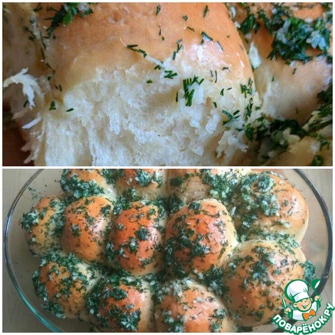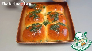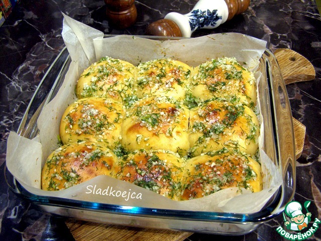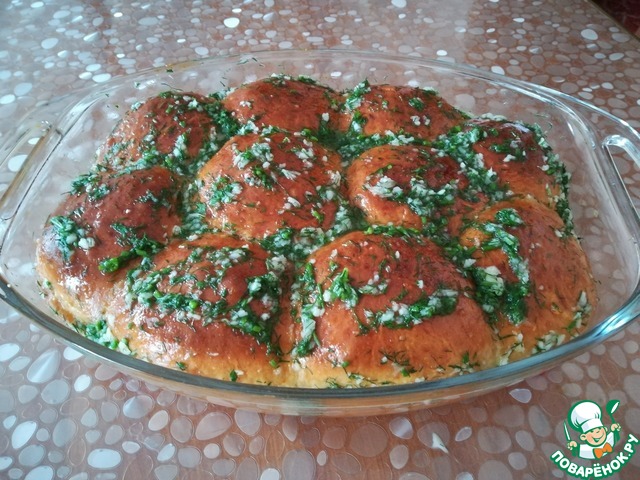 Достав пампушки из духовки, сразу же покрываю их чесночной заливкой. Аромат умопомрачительный)))