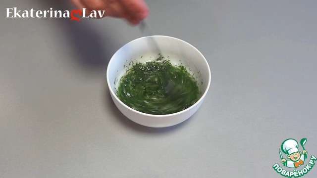Для заливки смешиваю растительное масло, воду, измельченный чеснок, зелень укропа и соль.