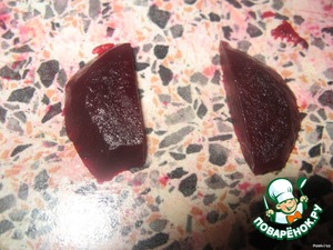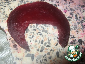 От оставшейся части отрезать кружок - это рот. Другая часть - мордочка.