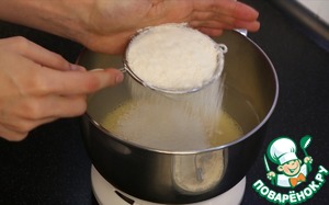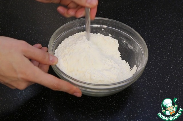Муку просеять вместе с разрыхлителем и содой.