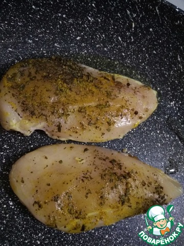 Обмазать куриное филе.