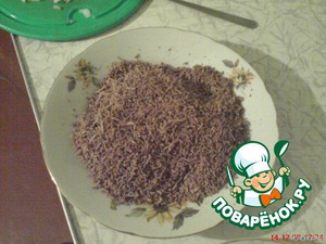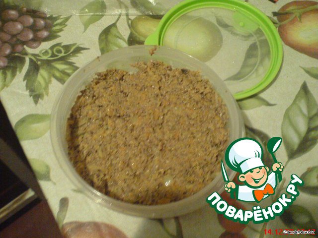 1. Натереть на мелкой терке отварную печень (можно вместо терки использовать блендер).
