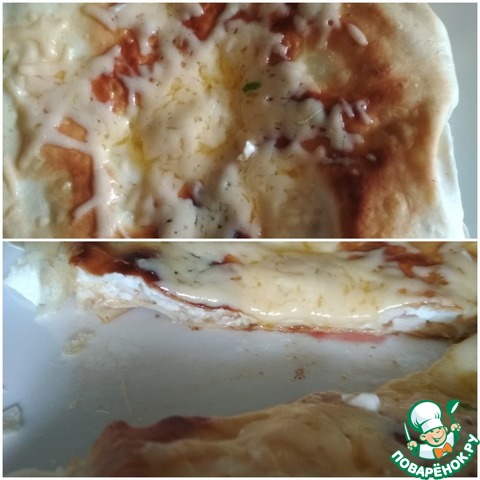 Положить второй круг из лаваша и жарить под крышкой примерно минуты три.