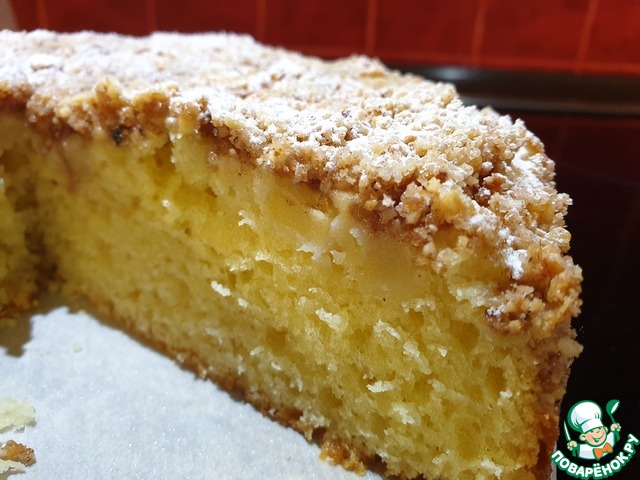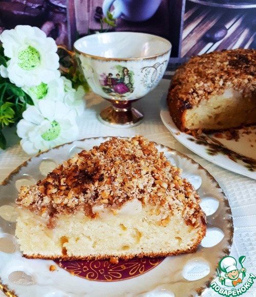 Творожный пирог с яблоком и орехами