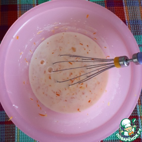 Из апельсина выжать сок, снять с кожуры цедру. У меня потребовалось 2 апельсина.