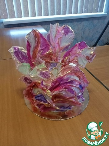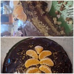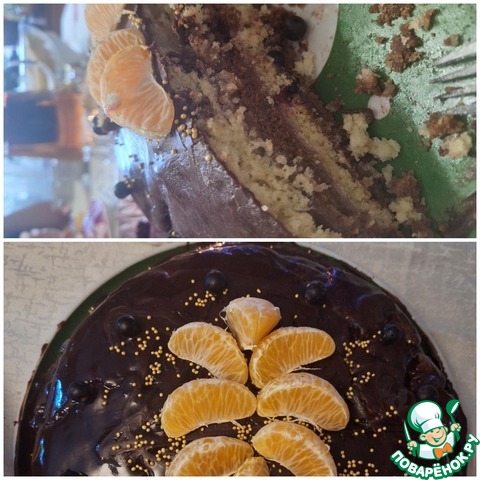 Поверхность украсить по вашему желанию. Я украсила дольками мандарина и драже изюм в шоколаде.