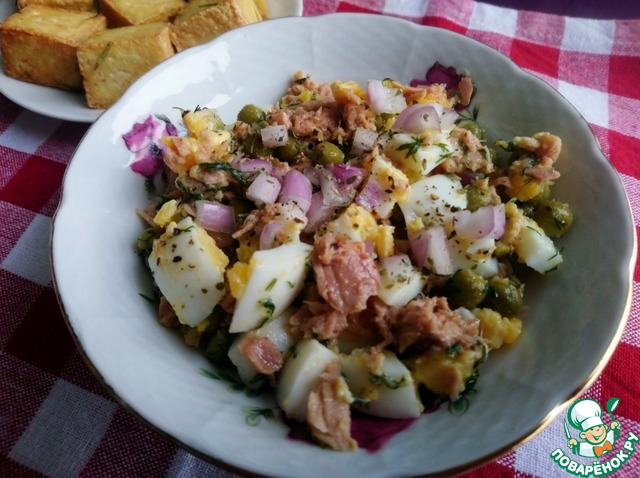 Простой в приготовлении салат. Сытный и вкусный. Подходит для праздничного стола - достойно выглядит и съедается всегда первым.