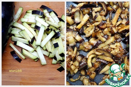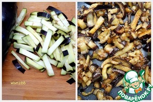 Баклажаны порезать соломкой и пожарить на оставшемся растительном масле, посолить.