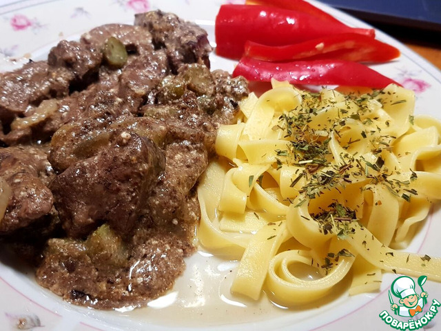 Печень у меня в семье любят все!!! Готовила я еe с маринованными огурчиками :) вкус сказочный!!! Всем советую!!!