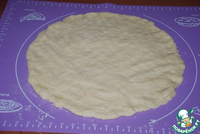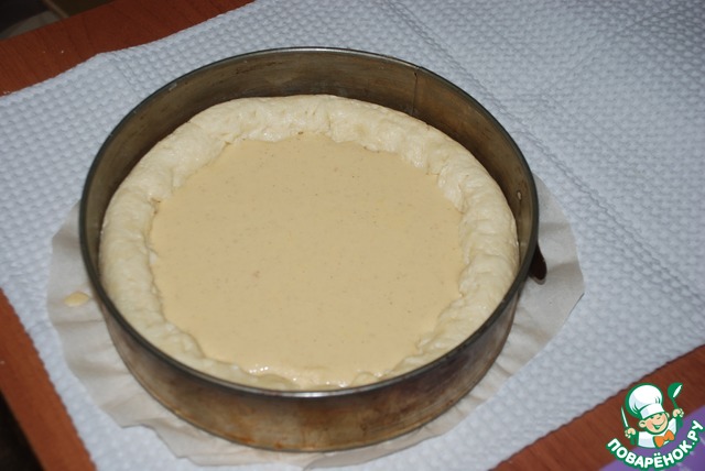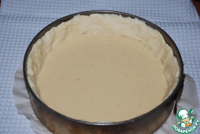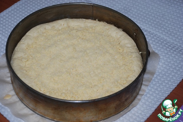 Тесто выложить в форму, формируя бортики. У меня моя старенькая и самая надёжная разъёмная форма диаметром 26 см. Меньшую лучше не брать. А вот бОльшую можно! Это если вы любите тесто потоньше раскатывать.