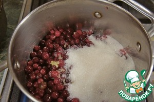 Смешать клюкву (замороженную не надо размораживать), лимонный сок и сахар. Довести до кипения, помешивая, и проварить несколько минут, пока не растворится сахар и растрескается клюква.