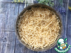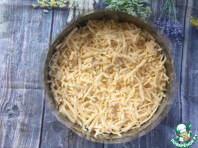 Теперь тертый сыр и снова майонез.