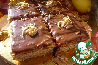 Делала в рамке 20 на 20, теста хватило, были небольшие трудности с желе, я его вылила рано, и оно немного протекло, надо было немного подождать, а потом лить.