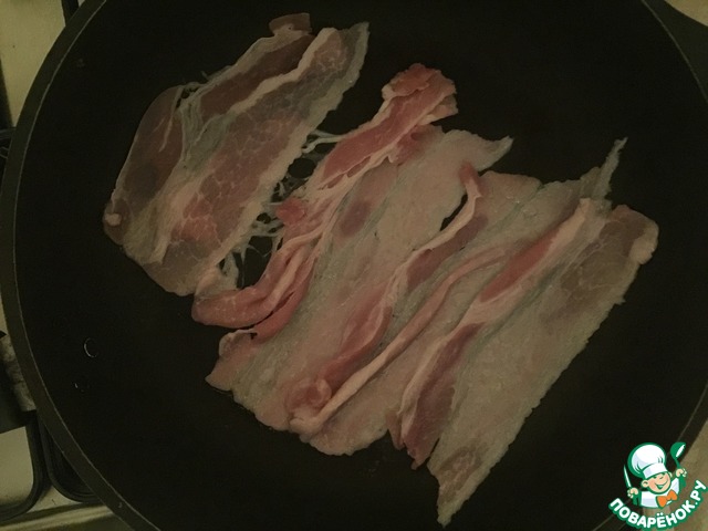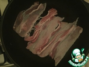 Обжарить бекон. У меня любительский тооооненькие ломтики.
