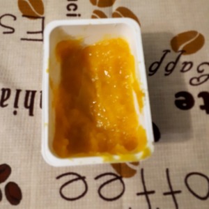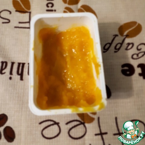 Тыквенное пюре у меня собственного производства. В сезон тыквы я ее запекаю в духовке, затем мякоть перебиваю блендером и замораживаю в контейнере.