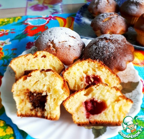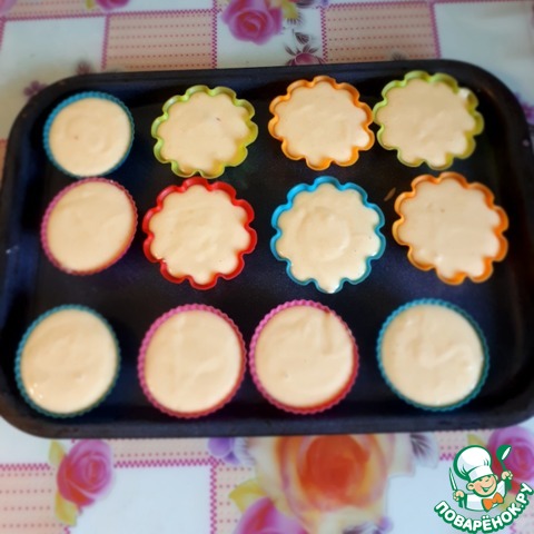 При разливании теста по формочкам внутрь можно положить кусочек шоколада или вишенку.