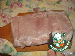 Аккуратно заворачиваем свинину, следя за тем, чтобы нигде не было дырок, иначе вытечет сок. Выкладываем кусок на противень и отправляем в духовку на 1-1,5 часа.