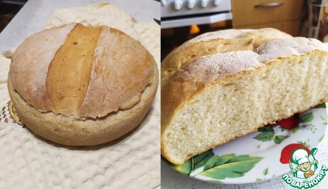 по размеру дна формы для выпекания хлеба. Выложить в форму, которую тоже припудрить мукой (масло в рецепте не использовалось СОВСЕМ). Острым ножом сделать неглубокий разрез по центру, так хлеб наверняка пропечется.