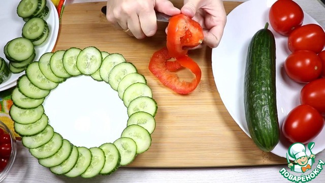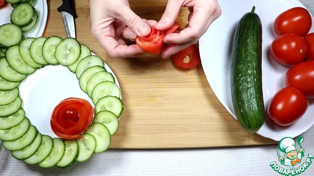 Рецепт «Простая нарезка из помидоров и огурцов»: