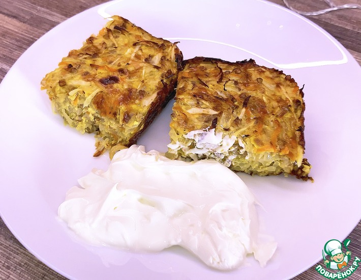 Но! Готовила дважды, оба раза получаелся рассыпчатый вариант. Как тушёная капуста, но в духовке, совсем не как запеканка, которая в тарелке выглядит крепким кусочком.